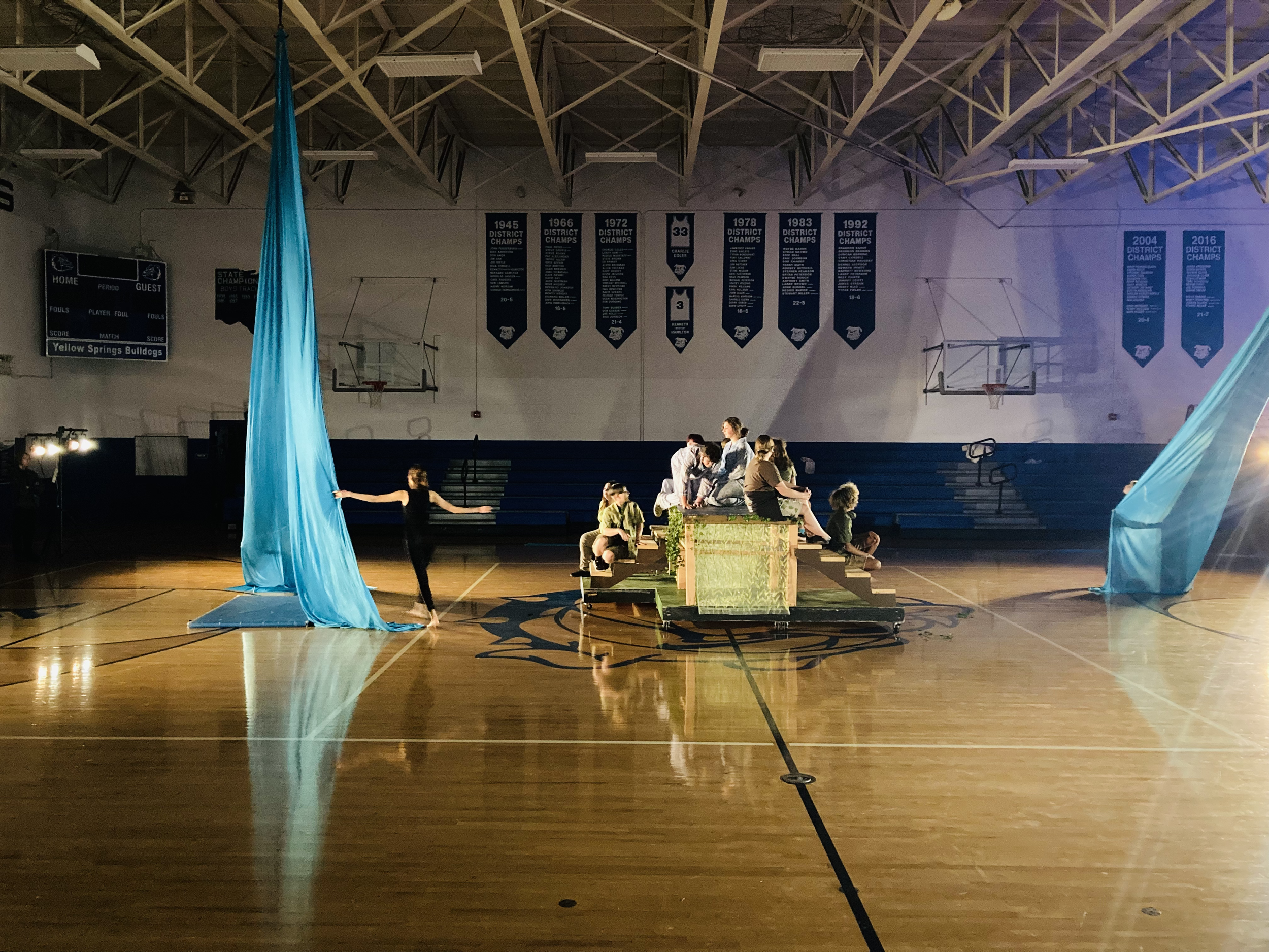 A play originally written by J.M. Barrie in 1904, Lorrie Sparrow-Knapp used the Peter Pan and Wendy script by Doug Rand to direct the Yellow Springs High School theater students to fly to Neverland and fight pirates, only to realize they were loved and missed at home. This was performed at the Yellow Springs, OH high school gym. Aerial choreography taught by GravityWorks member Maya Trujillo and fight choreography by Kayla Graham.
